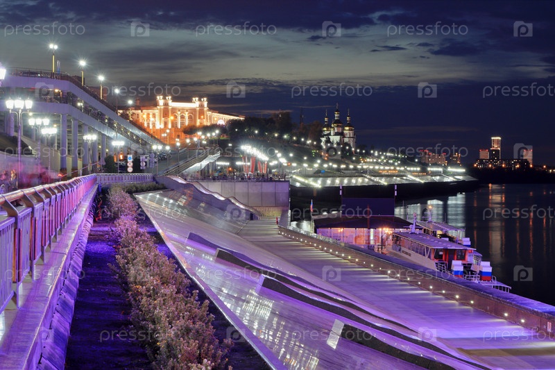 Ночной вид на набережной реки Туры в Тюмени
