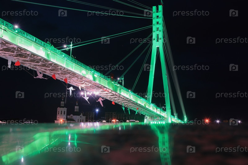 Ночной вид на мост влюбленных в Тюмени