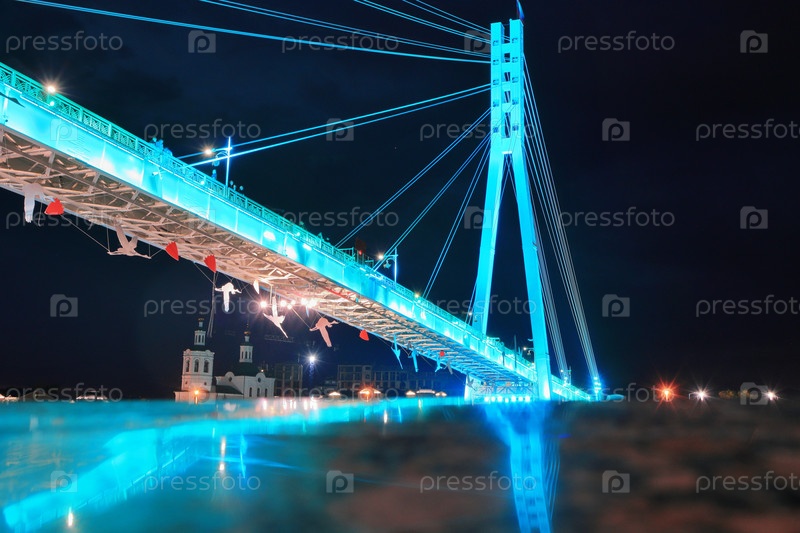 Ночной вид на мост влюбленных в Тюмени