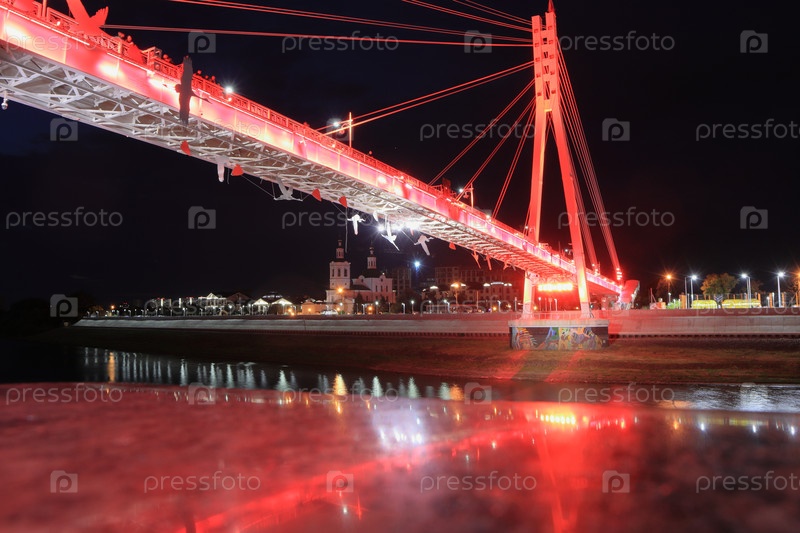 Ночной вид на мост влюбленных в Тюмени