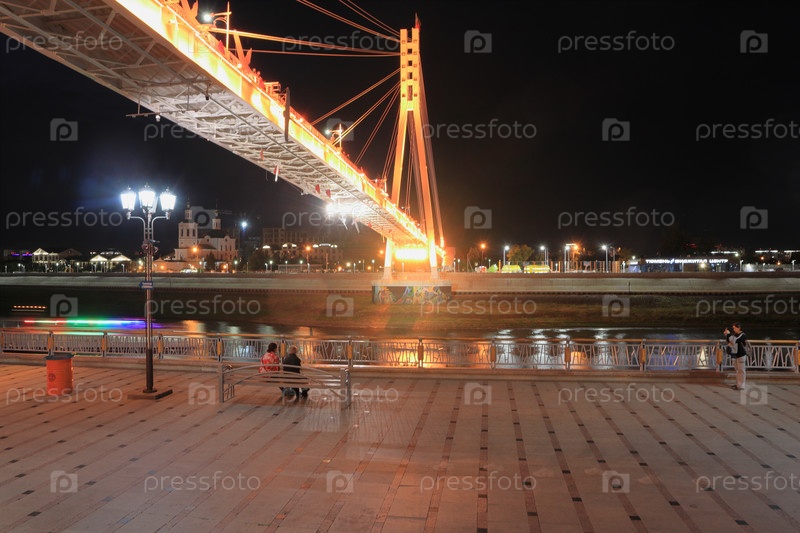 Ночной вид на мост влюбленных в Тюмени