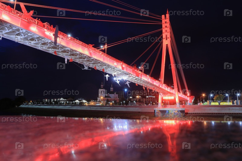 Ночной вид на мост влюбленных в Тюмени