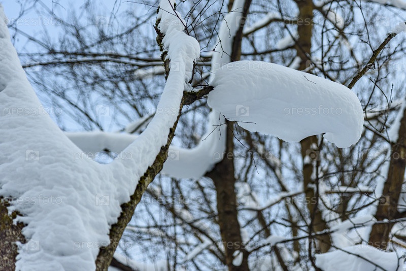 Заснеженные ветви деревьев украшены свежим порошком