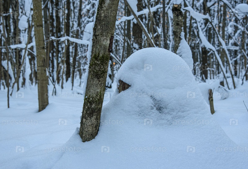 Спокойный зимний пейзаж с заснеженными бревнами в тихом лесу