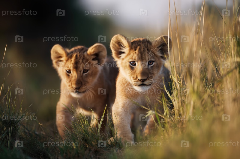 Львиные детеныши в траве