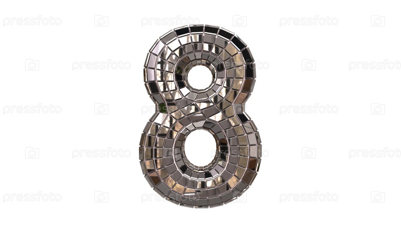 Число 8 из зеркал напоминает диско топку. буквы и цифры с небольших квадратных сегментов зеркала