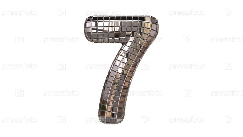 Номер 7 из зеркал похож на дискотечный шар. буквы и цифры с небольших квадратных сегментов зеркала