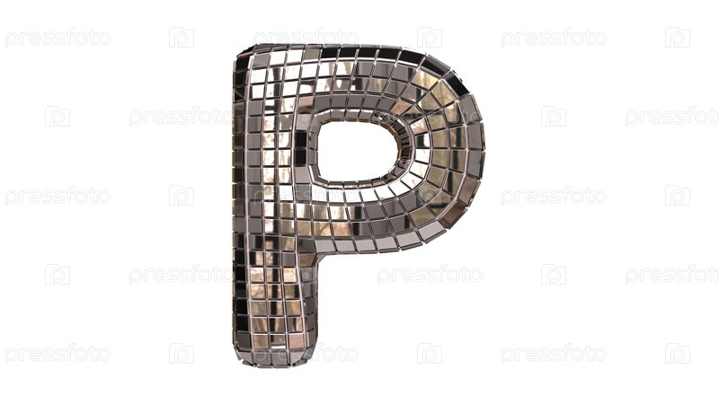 Буква P из зеркал похожа на дискотечный шар. буквы и цифры с небольших квадратных сегментов зеркала