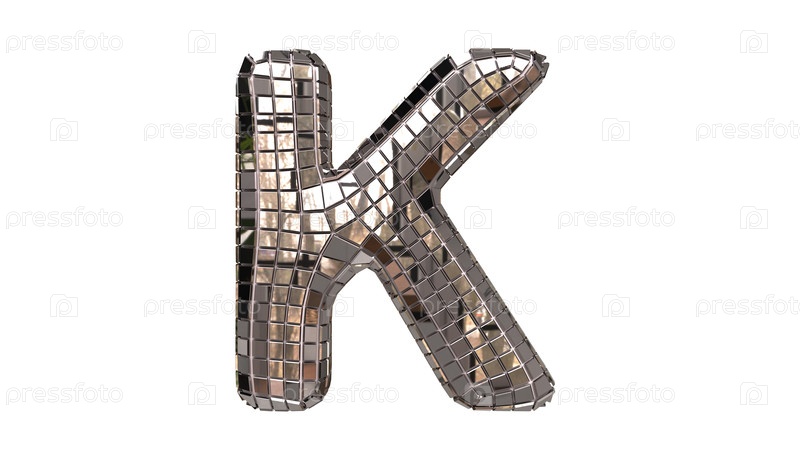 Буква K из зеркал похожа на дискотечный шар. буквы и цифры с небольших квадратных сегментов зеркала