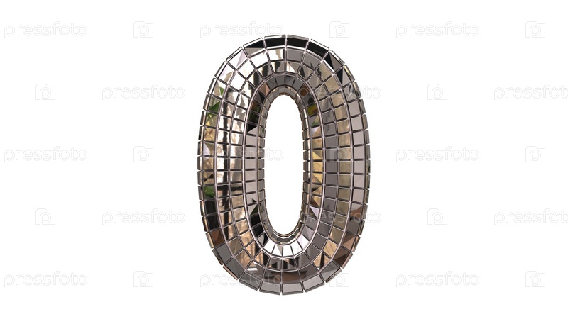 Ноль от зеркал, подобных дискотечному мячу. буквы и цифры из маленьких квадратных сегментов зеркала