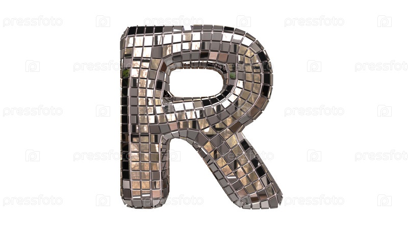 Буква R из зеркал похожа на дискотечный шар. буквы и цифры с небольших квадратных сегментов зеркала