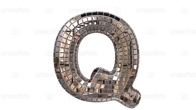 Буква Q из зеркал похожа на дискотечный шар. буквы и цифры с небольших квадратных сегментов зеркала
