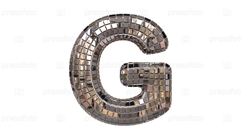 Буква G в зеркале похожа на дискотечный шар. буквы и цифры из небольших квадратных сегментов зеркала