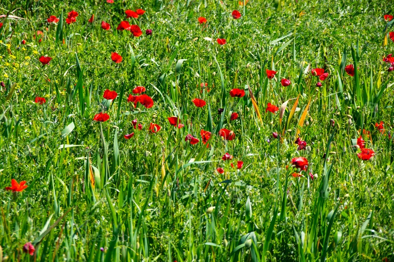 Поле маков, цветущих