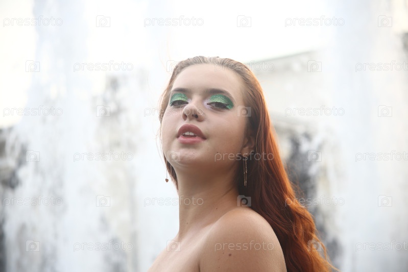 Красивая стильная девушка в зеленом платье позирует. Портрет женщины