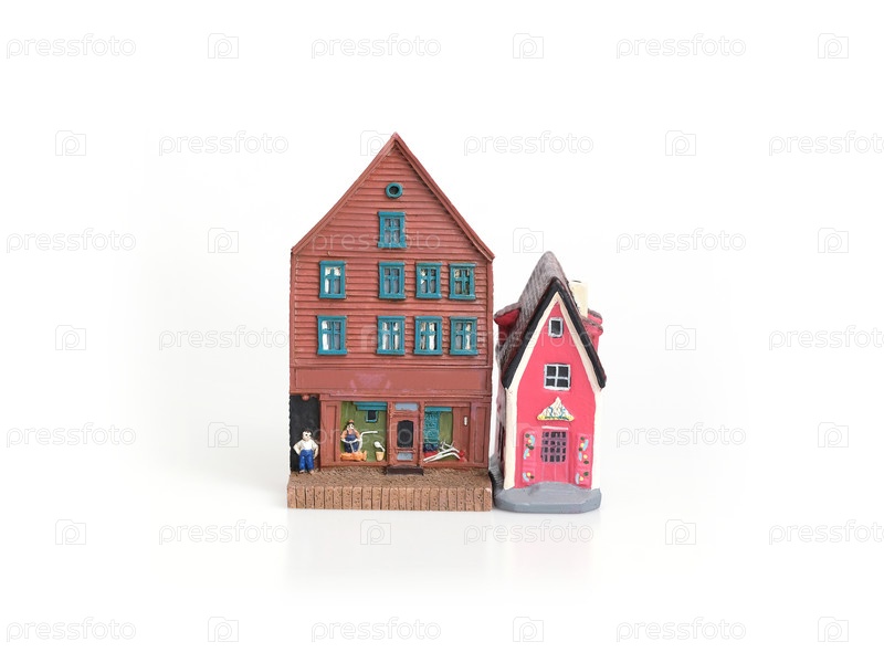 Керамический сувенир из стран Балтии, изображающий знаменитые старые дома, изолированные на белом фоне