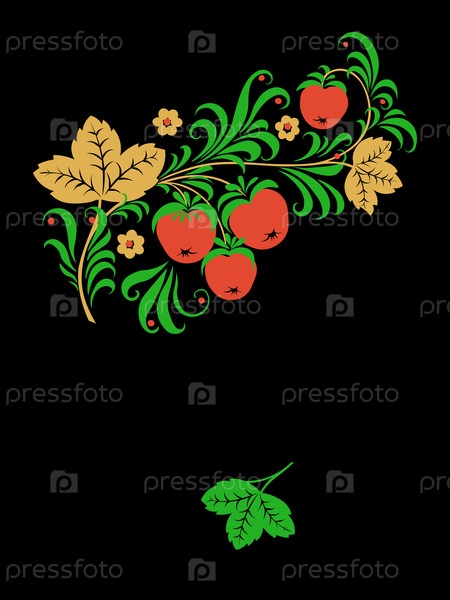 Векторный рисунок Традиционное русское народное украшение в стиле Хохлома. Фестиваль яблок Спасителя. Шаблон приветственной карточки
