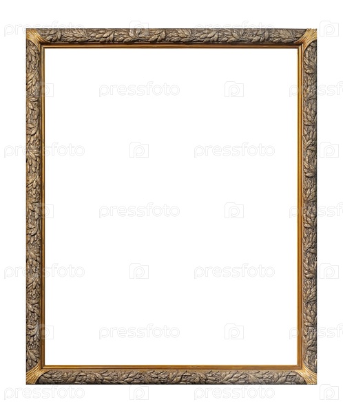 Золотая рама для картин, зеркал или фотографий, изолированных на белом фоне