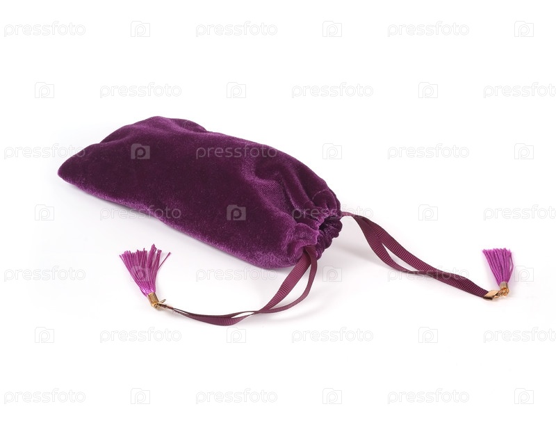 Бархатный подарочный пакет или очки, изолированные на белом фоне