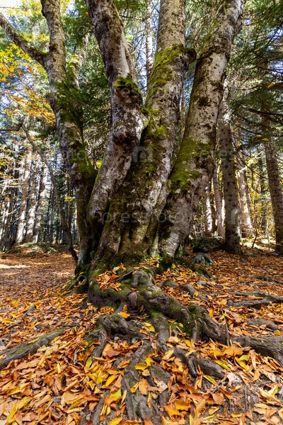 Корни деревьев на поверхности земли в лесу