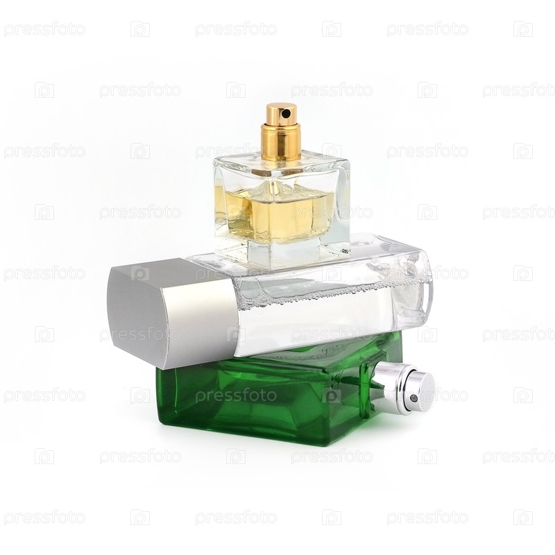 Запас бутылок парфюмерии изолирован на белом фоне