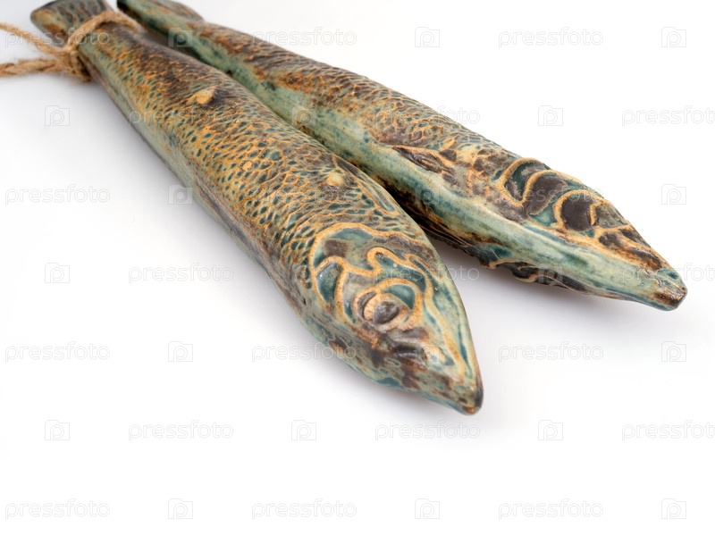 Несколько рыб (керамика) выделены на белом фоне