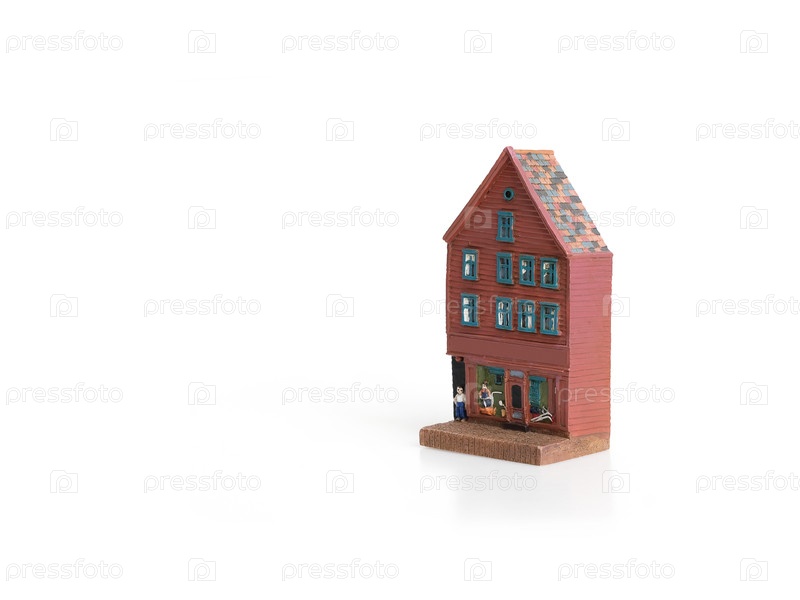 Керамический сувенир из стран Балтии, изображающий знаменитые старые дома, изолированные на белом фоне