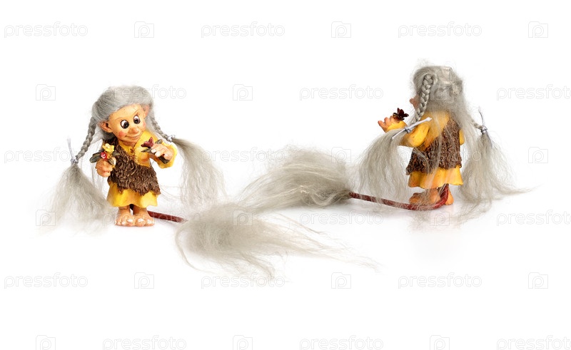 Сувенирный тролль с длинным хвостом из Норвегии, изолированный на белом фоне