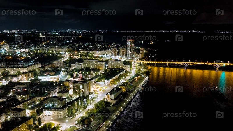 Саратовский мост через Волгу Панорама ночного города, вид с воздуха