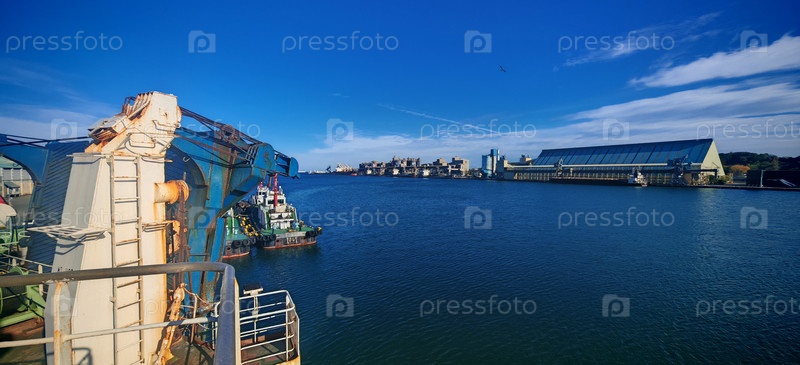 Вид на Donghae Южная Корея с верхней палубы парома EASTERN DREAM