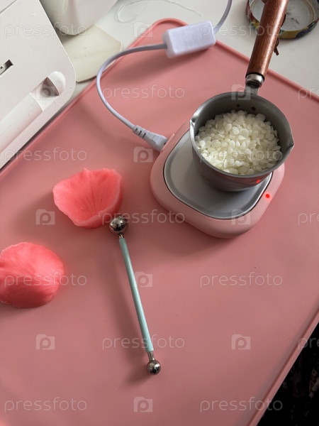 Чаша из пчелиного воска, для изготовления свечей. стоя на расплавленной плите