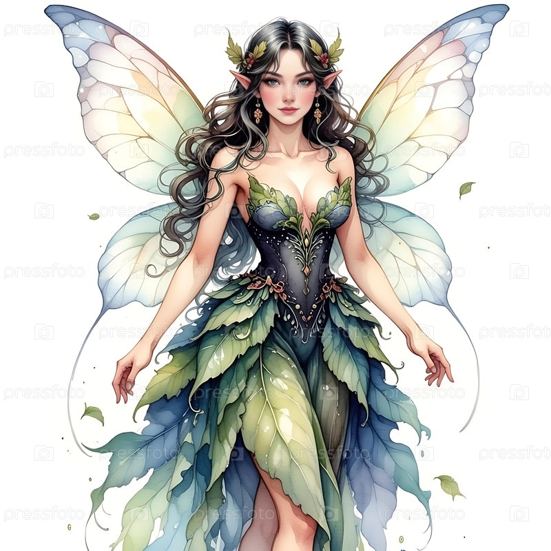 Феи, тонкие тона акварели, JPG-файл, 300dpi, белый фон - идеально подходит для тематического дизайна, упаковки и цифрового искусства