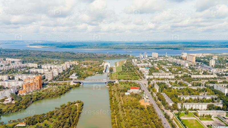 Волгоград, Россия.Красный армейский округ.Канал Волга-Дон, вид с воздуха