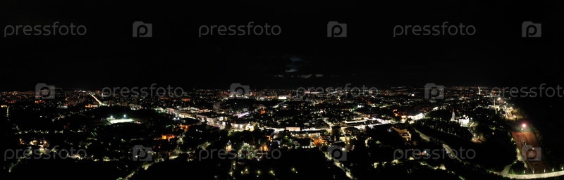 Владимир, Россия.Панорама центра города.Ночной вид с воздуха