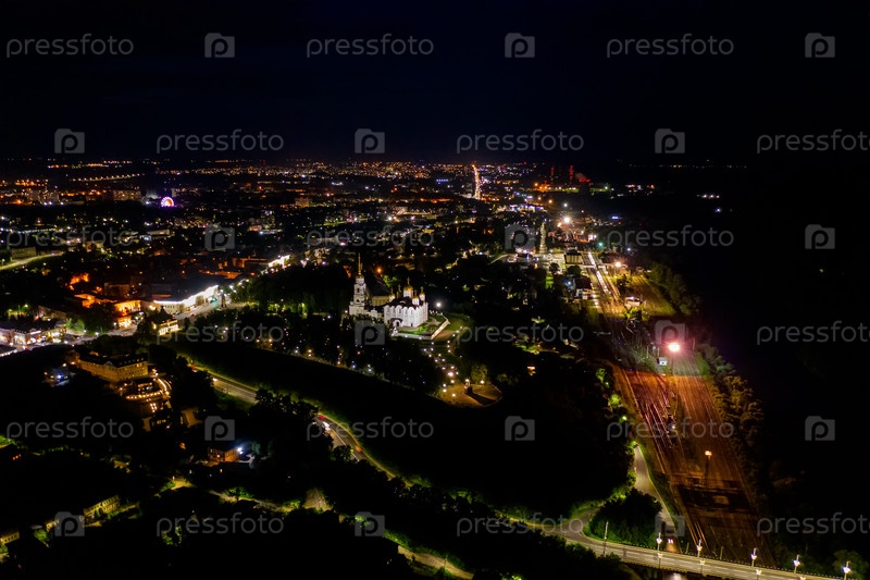 Успенский собор во Владимире (Стоянный собор) Собор Владимирского митрополия Русской православной церкви.Ночной вид с воздуха