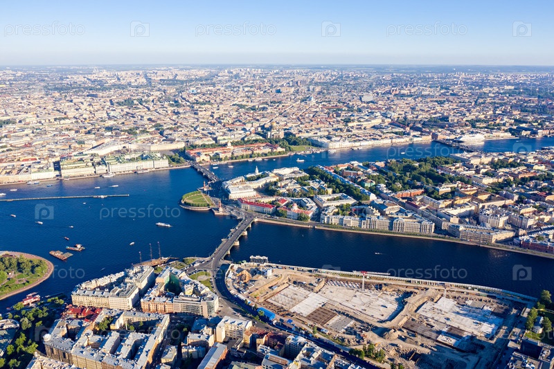 Санкт-Петербург, Россия. Часть Васильевского острова. Панорама центральной части города. Река Нева