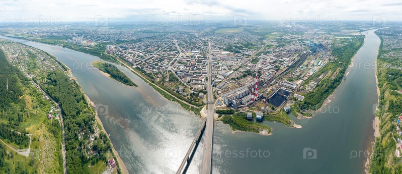 Панорама города с высоты птичьего полета.Кемерово, Россия, С беспилотника