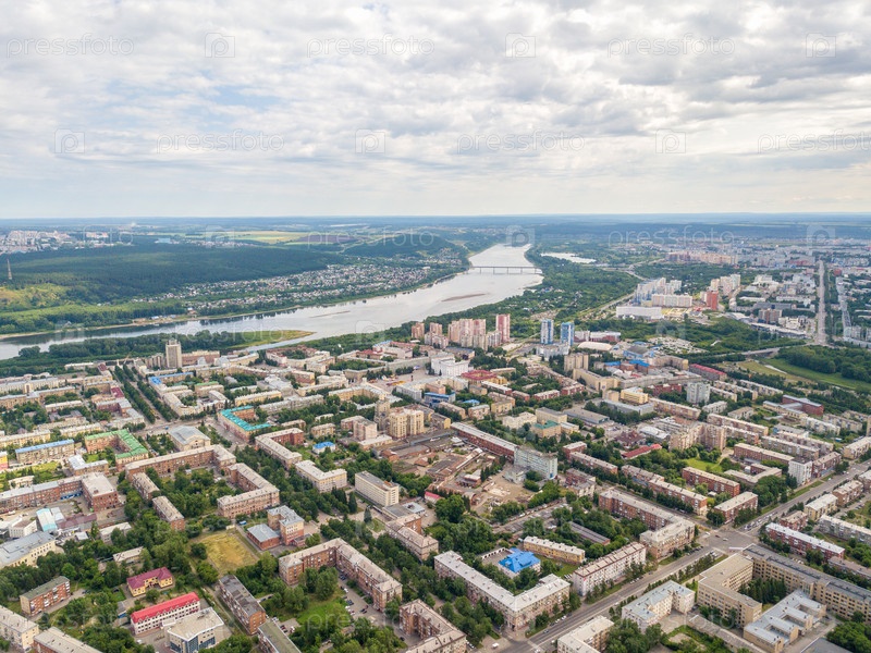 Панорама города с высоты птичьего полета.Кемерово, Россия, С беспилотника