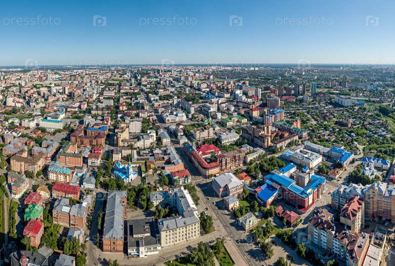 Город Тюмень с воздуха. вид на центр города. аэрофотосъемка