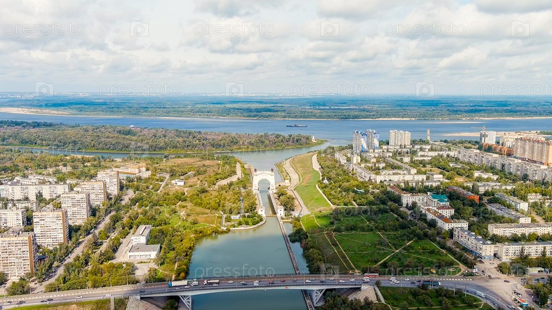 Волгоград, Россия.Красный армейский округ.Канал Волга-Дон, вид с воздуха