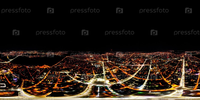 Ночная панорама Воронежа с воздуха Яркие уличные фонари Аэропорт Панорама 360