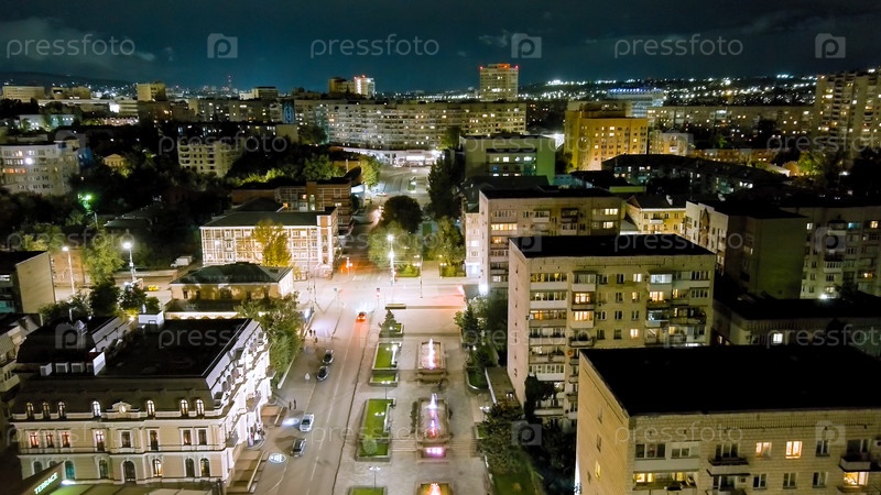 Саратов, Россия. улица Октябрьская. панорама ночного города, вид с воздуха