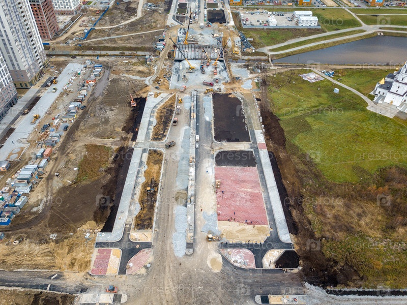 Екатеринбург, Россия Строительство нового моста и дороги в районе с новыми и строящимися домами