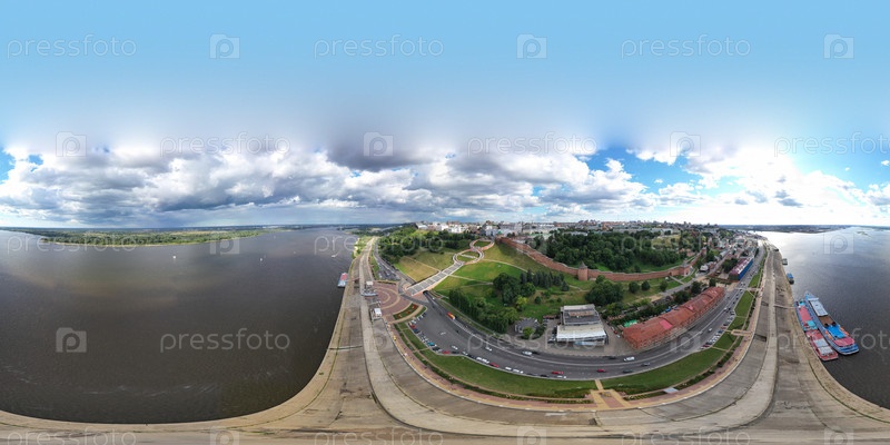 Нижний Новгород, Россия.Вид с воздуха Кремля и лестницы Чкалова.Панорама 360°