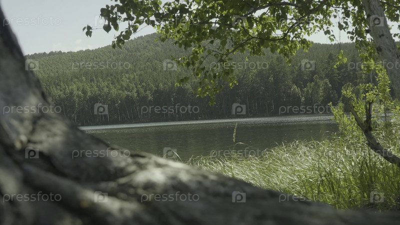 Прекрасный вид на большие зеленые деревья на озере за пределами города