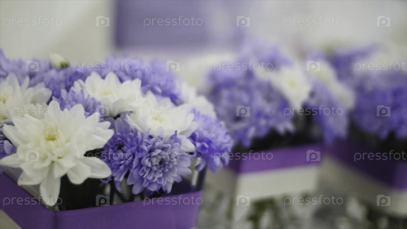Цветы в стеклянных горшках, селективный фокус. клип