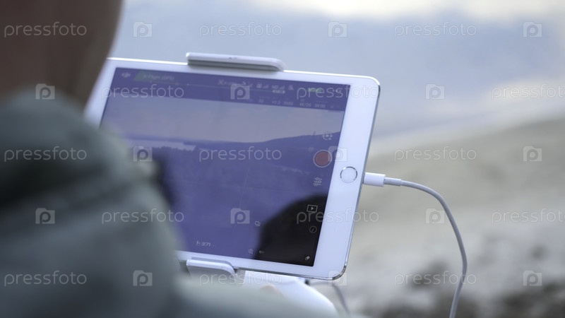 Двойные руки человека с пультом дистанционного управления летают на маленькой игрушке квадрокоптера в природе