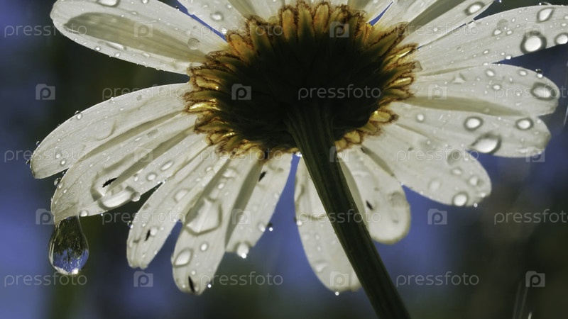 Красивая ромашка на солнце.Креативная.Ярко белый цветок под солнцем, который капает немного дождя