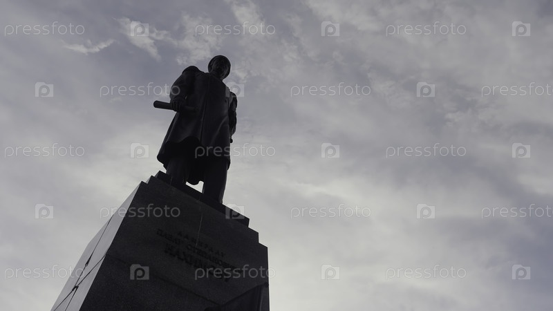 Ниже представлен большой бронзовый памятник имени Павла Нахимова.Продолжайте.Концепция искусства и истории, мемориал известного человека