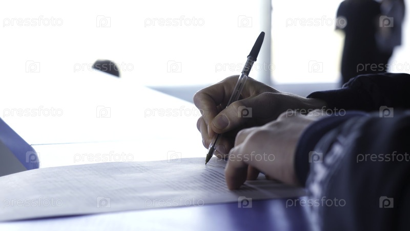 Мужчина подписывает контракт на близком расстоянии